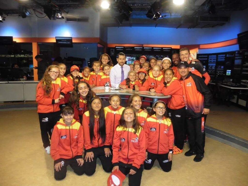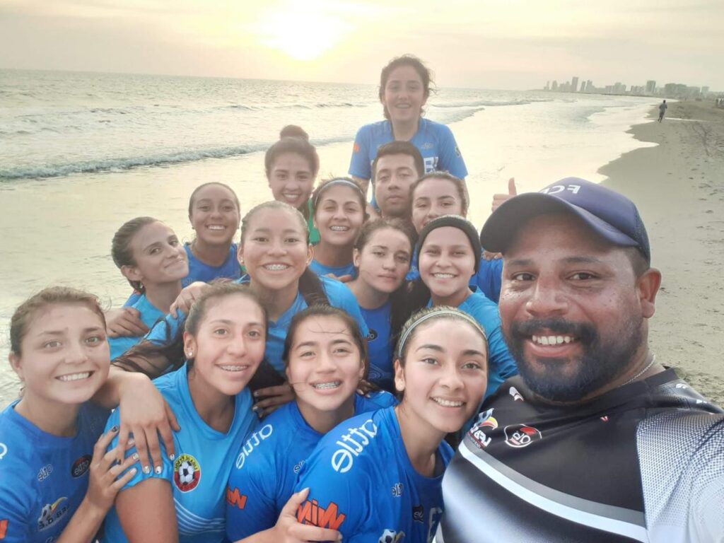 -Resulta que en la universidad estaba con el equipo masculino. Un día me llegaron un grupo de jugadoras de estudiantes y me preguntaron por Jhon Ortega, y les dije sí. Me dijeron que por qué no había un equipo de fútbol femenino. En ese tiempo estaba un poco desconectado de ello, pero enseguida me manifestaron que Cerros tenía un torneo de fútbol ocho y que ellas querían que la universidad representara, y que si él representaba, que en últimas tenía la decisión si conformaban la selección. Pero esto siempre lo cuento porque es real, y es que cuando ellas fueron a pedir el favor, me dijeron que por qué no hacía un partido contra el masculino. En seguida respondí que no porque las podían lastimar y pues no es machismo, Y como siempre digo, y lo sigo diciendo, y esto también se lo digo a mis dirigidas, que es un espacio para no medirse a ver si ellas son fuertes o no son fuertes, porque no es el objetivo. El objetivo es tener una exigencia mayor. Y así fue, cuando las vi jugar, quedé aterrado. No entendía la capacidad que estaba viendo. Habían cositas por pulir y por enseñar, pero en realidad, el talento que vi en el grupo me enamoró, y me enseñaron que el fútbol femenino sí existía. Me cautivó eso, la entrega, las ganas de querer aprender, el compromiso. Con tiempo empecé a estudiar entrenamiento deportivo y fisiológicamente, empecé a conocer mucho más del fútbol femenino y todo lo que incluye. Cambié hasta el método de entrenamiento, y llegué a conocer la parte del ciclo menstrual de la mujer. ¡Ah! Otra cosa, es que, es muy chévere de ustedes que no se ponen con tapujos, son directas y van al grano. Fue un gran reto, un reto que se debía potenciar. Nunca dudé en el fútbol femenino. Y ya son quince años dirigiendo el fútbol Fem. He tenido la bendición y la fortuna de dirigir muchas niñas que hoy en día son referentes del fútbol de Colombia, y me enorgullece ver, cuando eran niñas de once, doce, trece, y ver lo que son, y cómo se sembró algo muy gratificante.