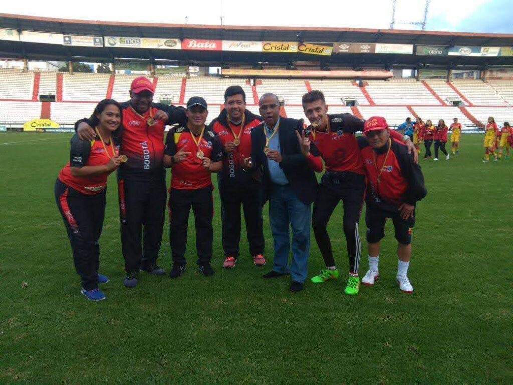 -En dos mil quince hay la posibilidad de llegar a la Selección Bogotá como asistente técnico del profe Uber Luna para los juegos nacionales del Chocó y del Tolima. Ahí lo conozco y me abrió un espacio para hacerme conocer. Cuando llegué, me encuentro con unas jugadoras como María Morales, Karen Páez, Alison Ballesteros, Angie Castañeda, Viviana Acosta, Sara Pulesio, Laura Barreto, Lina Jaime, Yised Moreno. ¡ y, como se dice por ahí! empezaron a medir en el aceite. ¿Qué sabía? ¿Qué no sabía? Y pues, poco a poco mostré mi trabajo, gané mi respeto, ganamos un espacio. También nos llevamos medalla de plata final con Antioquia. Digamos que ahí el profe, al siguiente año, me nombra como técnico de selección infantil de Bogotá, de sub-15. Nada más, ni nada menos que Ángela Garabito, Karla Viacha y rojitas, volante de Santa Fe.