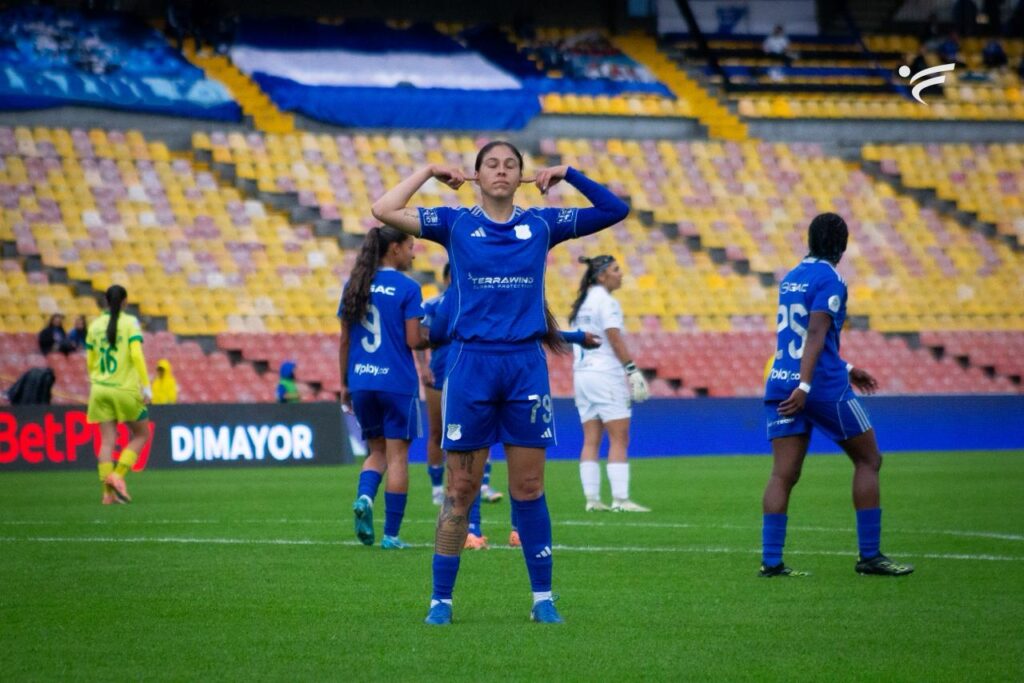 Isabela Sánchez celebrando el segundo gol del encuentro. Foto: Millonarios FC Femenino