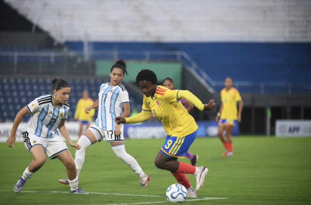 Colombia intentó adueñarse del balón desde los primeros minutos, construyendo juego desde el fondo y buscando profundidad en ataque. Sin embargo, un error en salida, sumado a la momentánea inferioridad numérica por la lesión de Vanessa Puerta, fue bien aprovechado por Argentina.